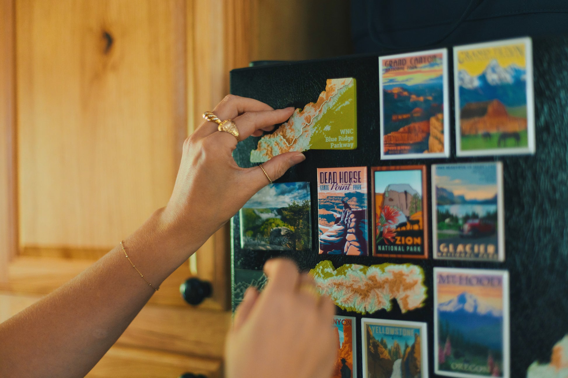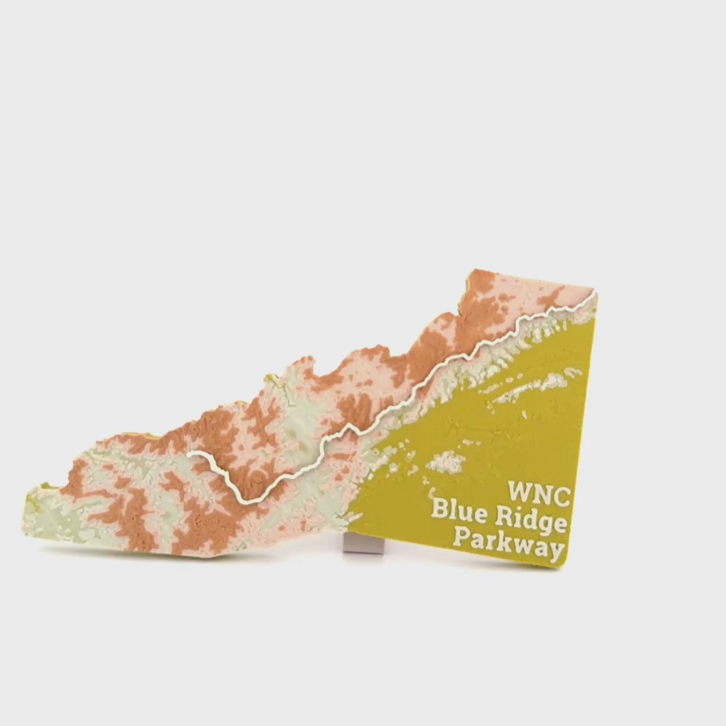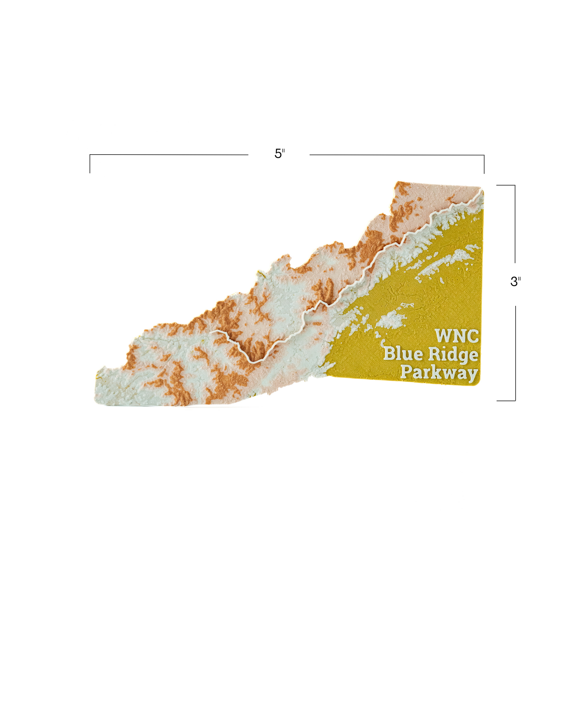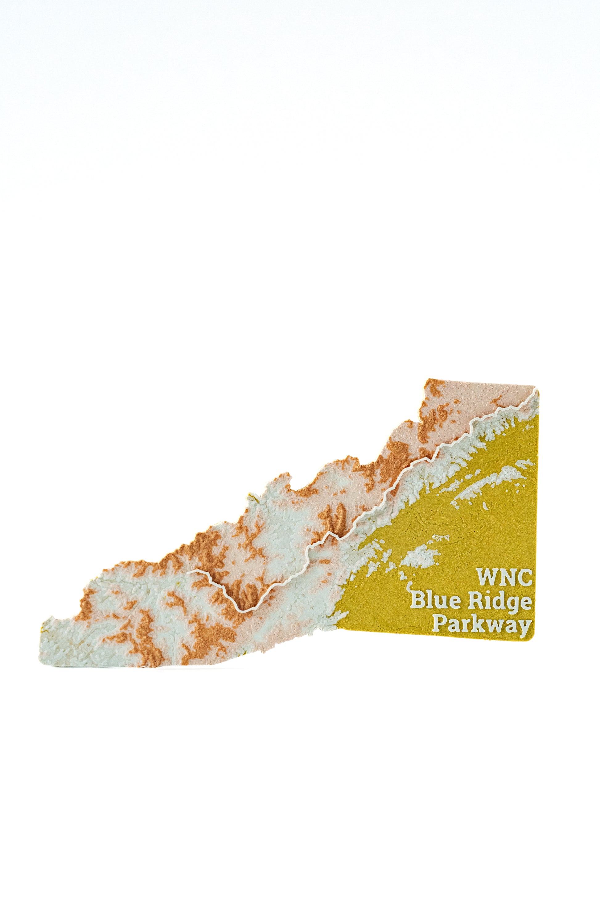 This is a hand-held map of Western North Carolina, with the Blue Ridge Parkway visibly raised from the surface of the surrounding topography. Magnetic, so perfect for a fridge or any suitable surface!